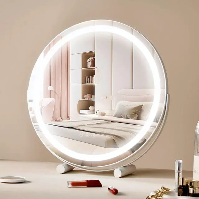 Mirror Shape: Round,Color: White,Item Model Number: CQ50,Item Dimensions: 20.2 x 3.9 x 20.6 inch / 513 x 100 x 523 mm,Material: Eco-friendly mirror; Frame & Base: Steel; Back Panel: MDF,Net Weight: 8.2 lbs / 3.7 kg,Lifespan: 50,000 hours