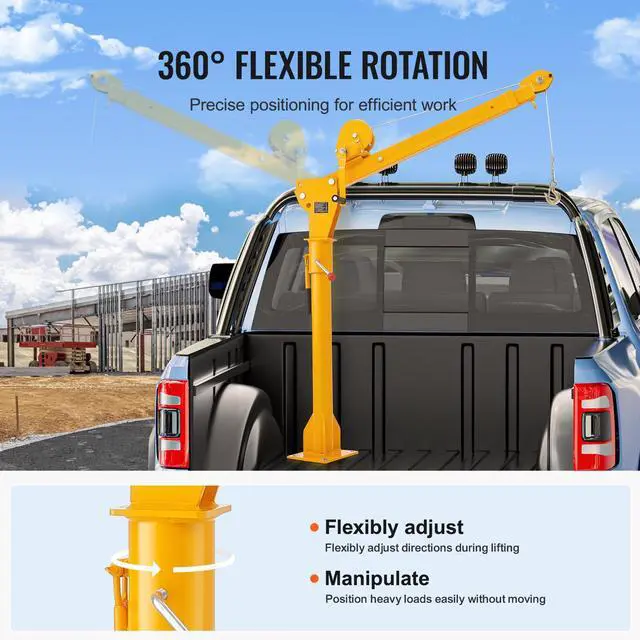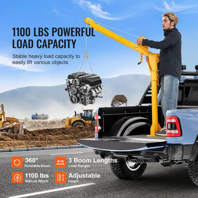 VEVOR Pickup Truck Crane, Folding Truck-Mounted Bed Crane with 1100 lbs Manual Winch, Steel Pickup Truck Jib Crane Hoist 360 Degrees Swivel for Lifting Goods in Construction, Forestry, and Factory