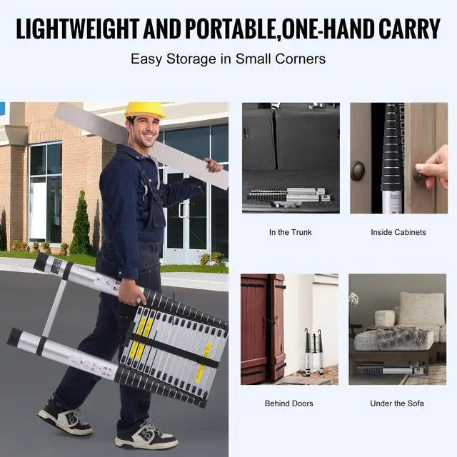 • VEVOR Telescoping Ladder, 20.3FT Aluminum Lightweight Extension Ladder, Multi-button Retraction Collapsible Ladder, 375 LBS Capacity with Non-slip Feet, Portable Compact Ladders for Home, RV, Loft