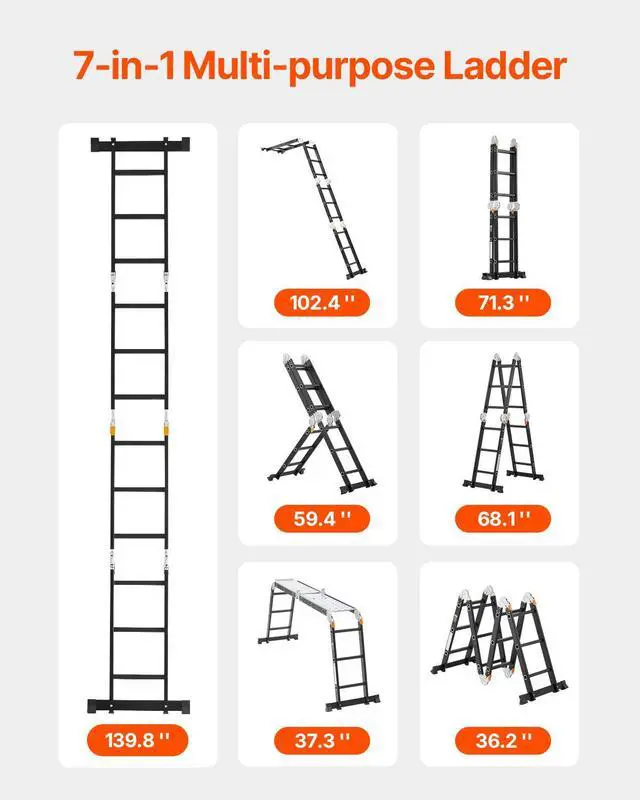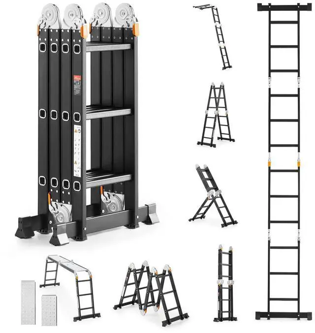 VEVOR Multi-Purpose Folding Ladder, 7-in-1 Tall Extension Step Ladder, A Frame 3 Step with Scaffolding Plank Telescoping Ladder, 12ft Reach Height Heavy Duty Ladder, 330 lbs Capacity for Home Outdoor
