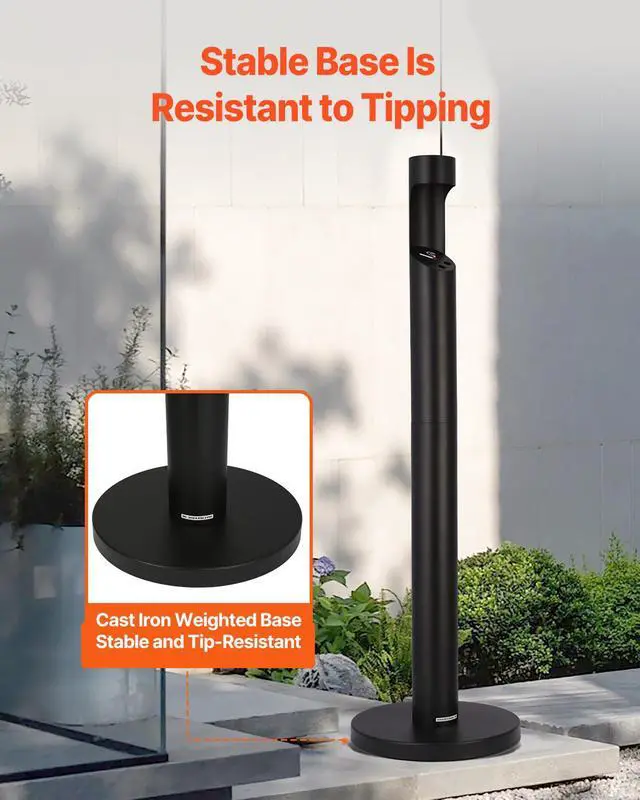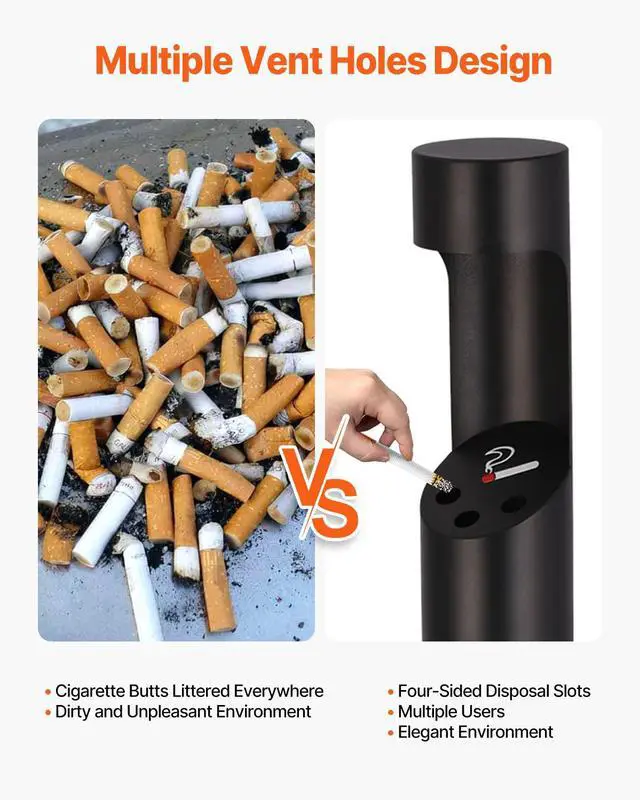 VEVOR Cigarette Butt Receptacle, Commercial Cylinder Cigarette Butt Container, Freestanding and Weatherproof Outdoor Cigarette Butt Disposal for Garden, Office, Restaurant, Hotel, Bar, Patio, Black