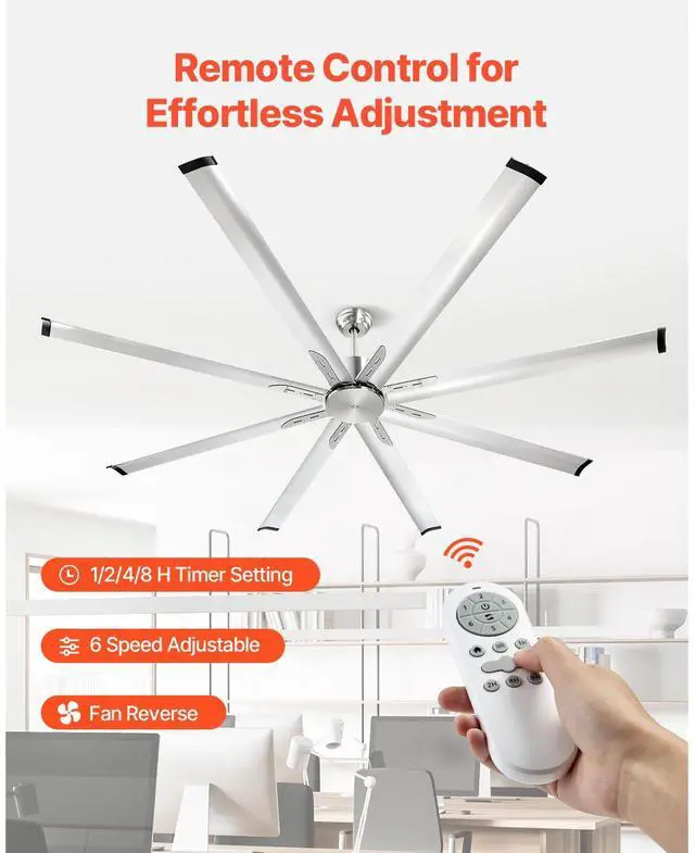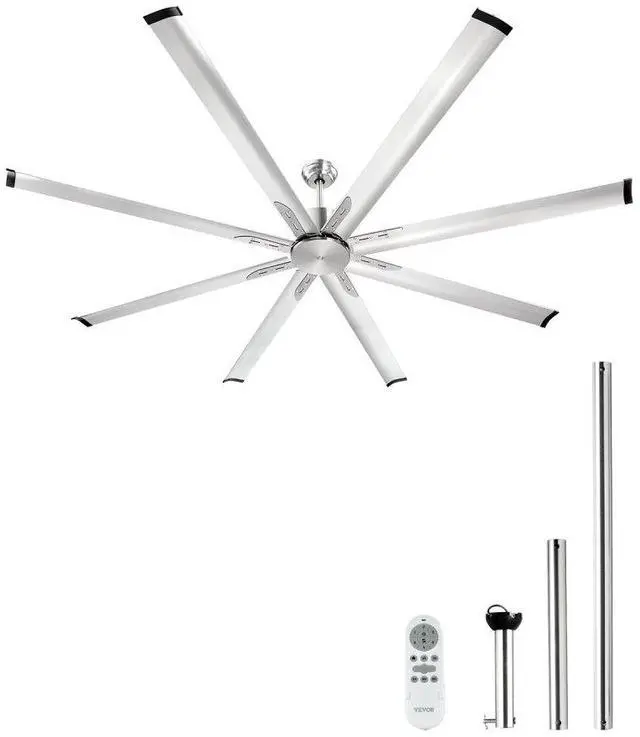 VEVOR 84 In Ceiling Fan without Light, 6-Speed Remote Control, Aluminum 8-Blade, Reversible DC Motor, Modern Low Profile Flush Mount Fan for Bedroom, Living Room, Patio, Indoor/Outdoor, Brushed Nickel