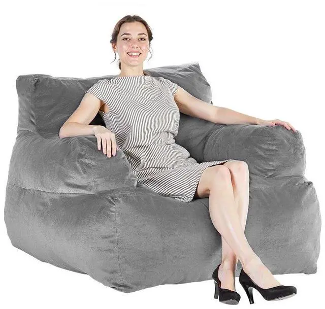 VEVOR Bean Bag Chair, BeanBag Sofa Chair with Armrests for Adults, Fluffy Plush & High-Density Foam Filling Adult Bean Bag with Zapper, Comfy Lazy Sofa Chair Ideal for Living Room, Bedroom, Grey