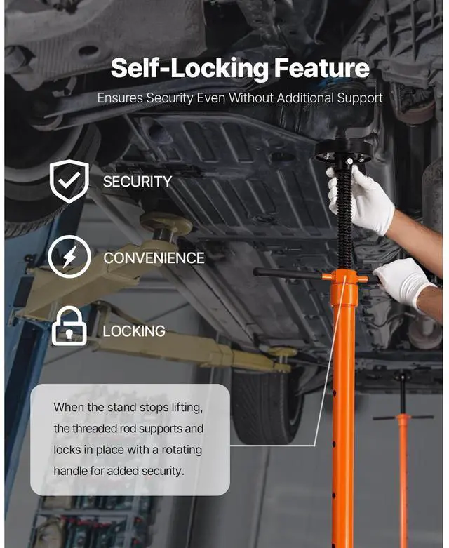 VEVOR Underhoist Support Stand, 3/4 Ton Capacity Under Hoist Jack Stand, Lifting from 38.4 to 75.4 in, Bearing Mounted Spin Handle, Self-Locking Threaded Screw, Two Wheels, Support Vehicle Components