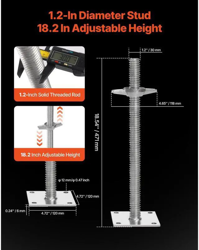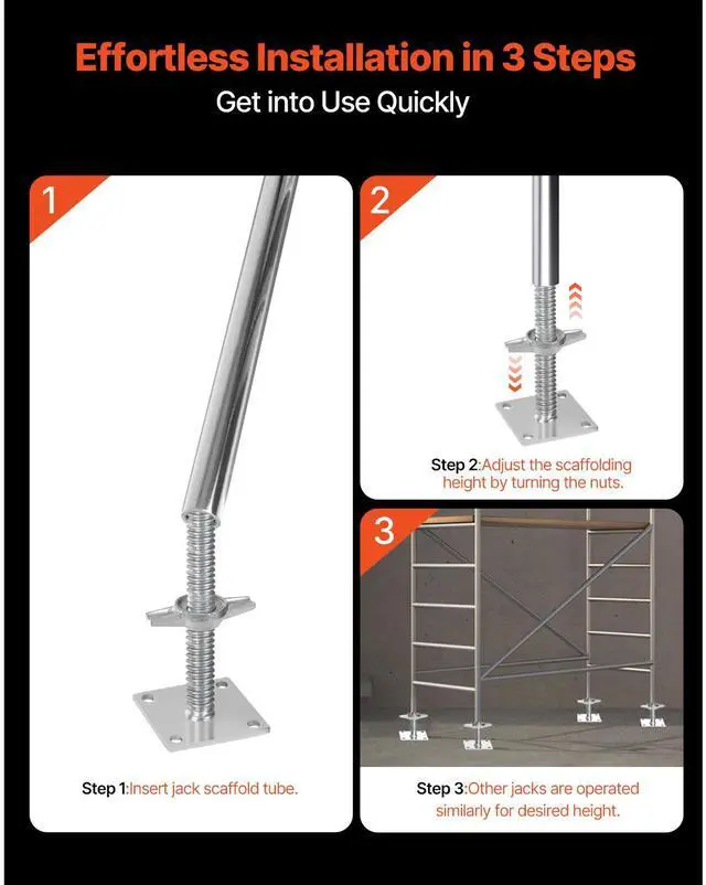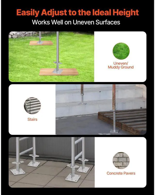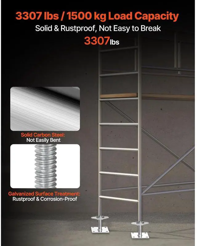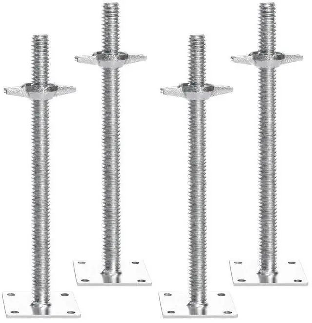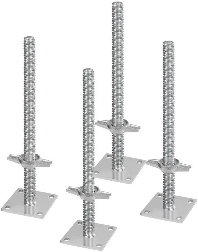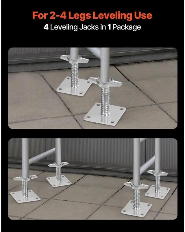 VEVOR 4-Pack Adjustable Leveling Jacks, 18.2 In Adjustable Height & 3307lbs/1500kg Total Load Capacity Scaffold Jacks Feet, Solid Carbon Steel Screw Jacks for Baker-Style Scaffolding Equipment, Silver