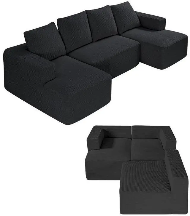VEVOR Modular Sectional Sofa, U Shaped Modular Sofa with Chaise, Cloud Sectional Couch with High Rebound Sponge and Density, Upholstered Corduroy Couch with Cushion for Living Room, Bedroom, Black