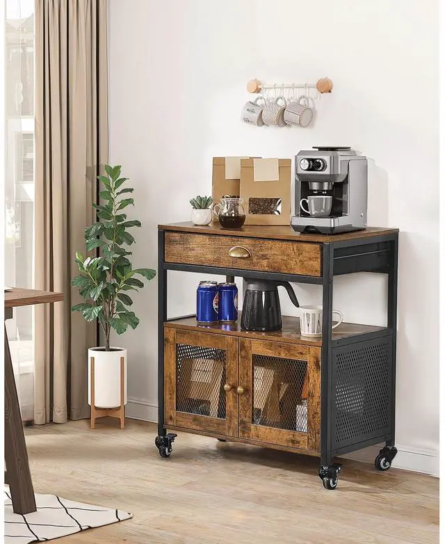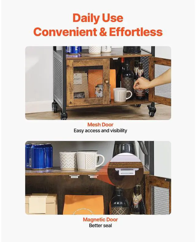 VEVOR Coffee Bar Cabinet, 24 Inch Farmhouse Coffee Bar Cabinet with Storage, Movable Coffee Bar Table with Wheels & Mesh Door, Sideboard Buffet Cabinet for Kitchen, Entryway