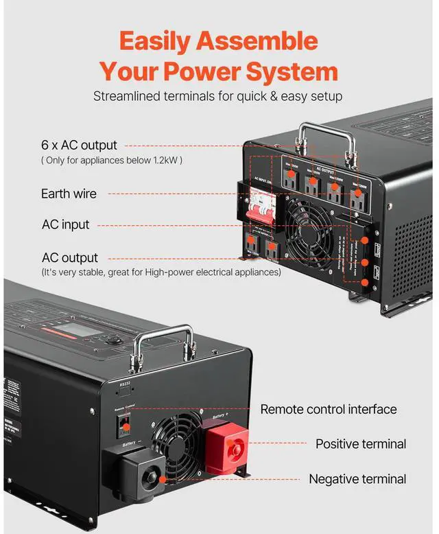 VEVOR Pure Sine Wave Inverter Charger, 6000 Watt, DC 48V to AC 120V Power Inverter with LCD Display, Remote Control, Solar Inverter for Off-Grid Solar RV Boat Home, Compatible with Various Batteries