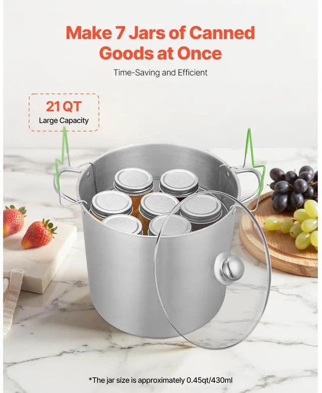 VEVOR 21 QT Canning Pot with Rack and Lid, Stainless Steel Waterbath Canner with Dual Handle and Glass Lid, Compatible with All Cooktops: Induction, Gas, Electric, Glass, Ceramic, Halogen