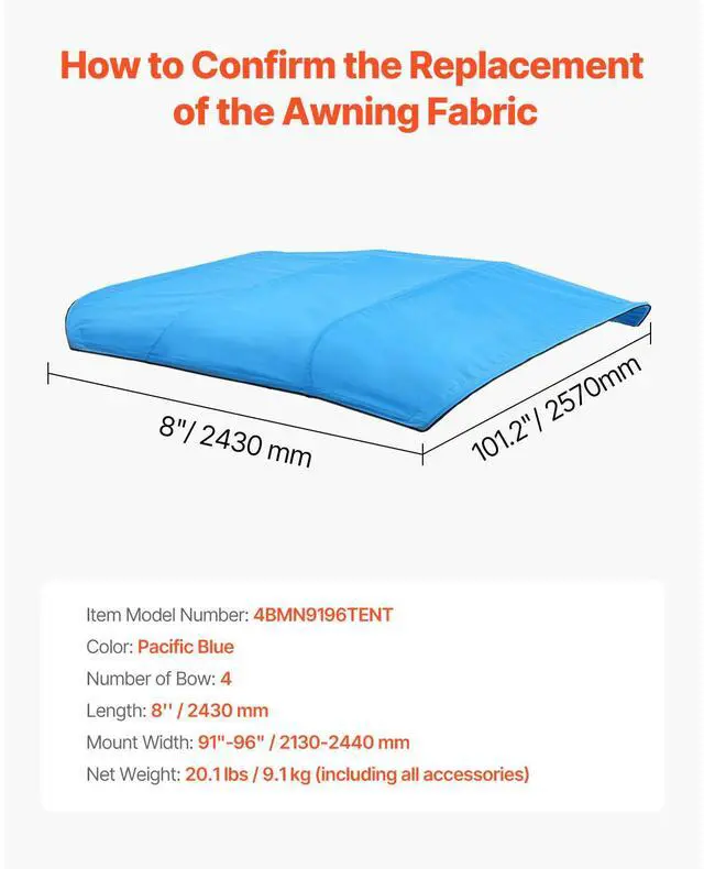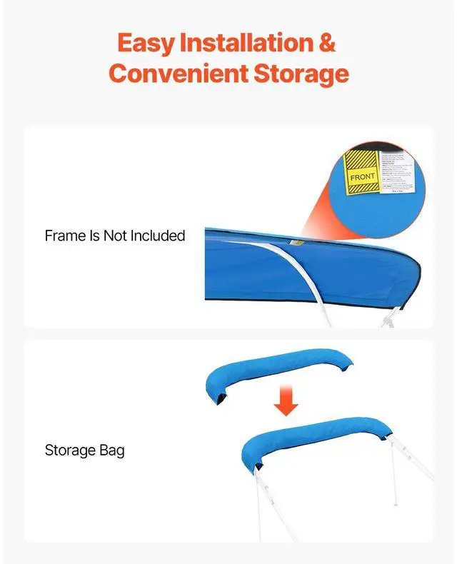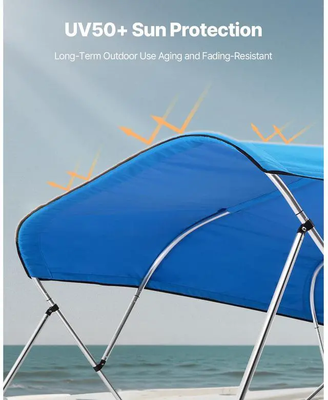 VEVOR 4 Bow Boat Bimini Tops, 600D Polyester Canopy, Waterproof & Sun Protection Boat Awning Canopy with Storage Bag, Bimini Top Replacement, 96"Lx(91"-96")W, Pacific Blue (Support Frame Not Included)
