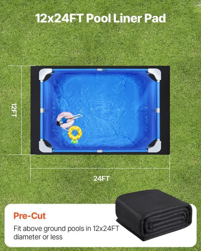 • VEVOR Rectangle Pool Liner Pad, 12 x24 ft Pool Liner Pad for Above Ground Swimming Pools, Extra-Thick Pool Mat, Prevents Punctures, Recycled Geotextile Material Underlayment Pad, Extend Liner Life