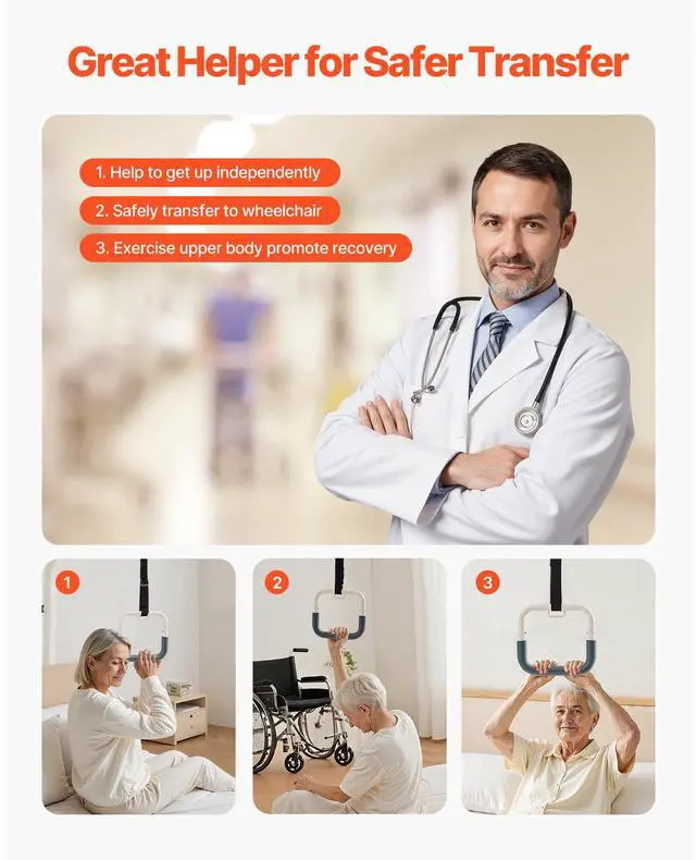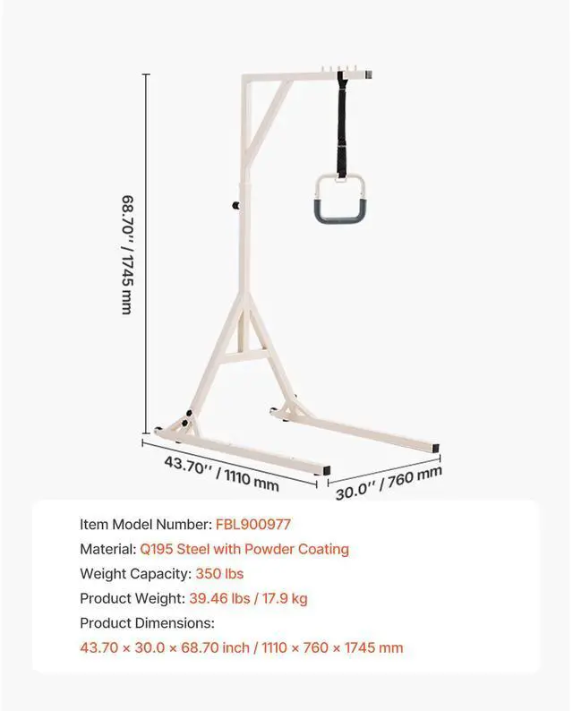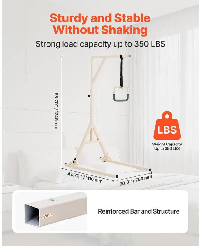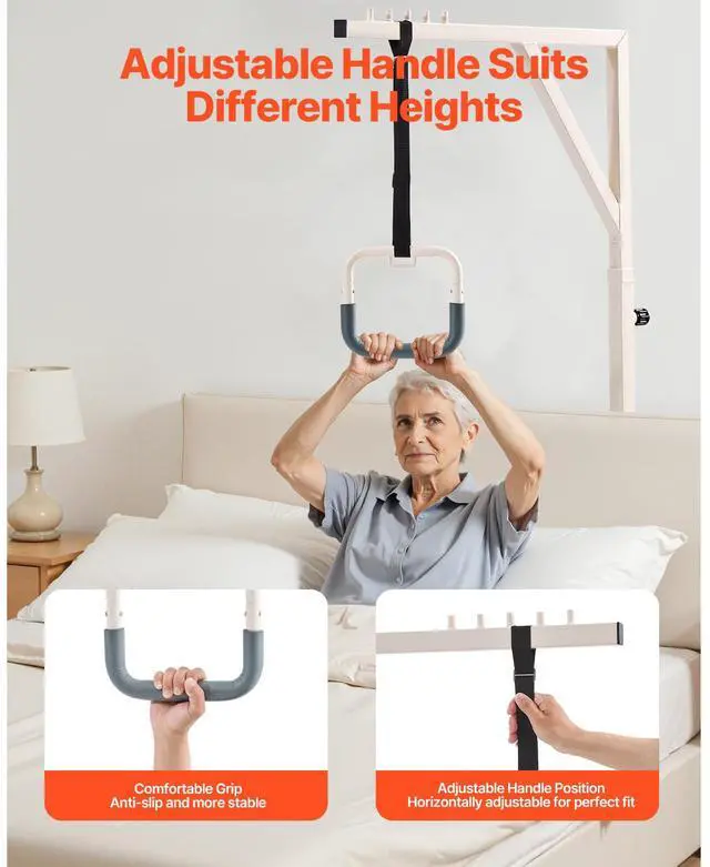 VEVOR Trapeze Bar for Bed Mobility, Height-Adjustable Bed Trapeze with 2 Casters, 350LBS Weight Capacity Heavy Duty Pull Up Trapeze Bar with Floor Stand for Elderly, Disabled, Bedridden Patients