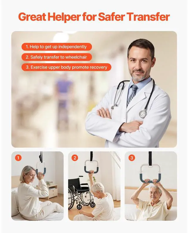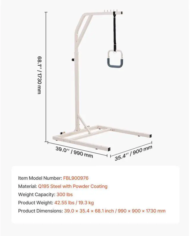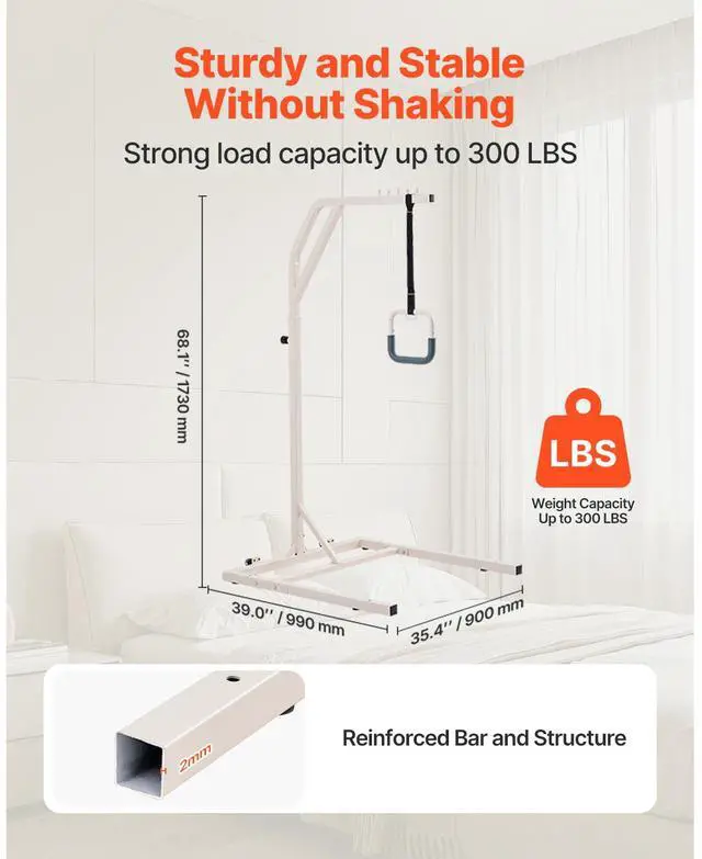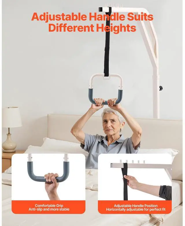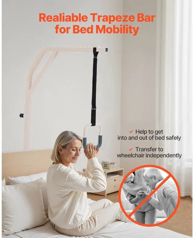 VEVOR Trapeze Bar for Bed Mobility, Height-Adjustable Free Standing Trapeze Bar with 2 Wheels, 300LBS Capacity Bed Pull Up Assist for Elderly Disabled, Ideal for Hospital, Nursing Home & Home Care