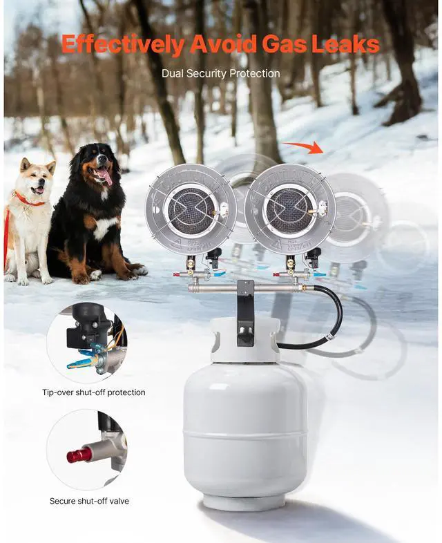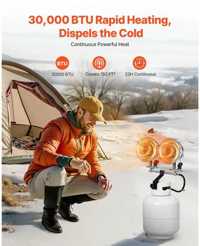 VEVOR Propane Tank Top Heater, 30000 BTU Rapid Heating 180-Degree Infrared Radiant Tank Top Gas Heater, 3 Heat Settings for Ice Fishing/ Hunting/Outdoor Work, Single Burner Square