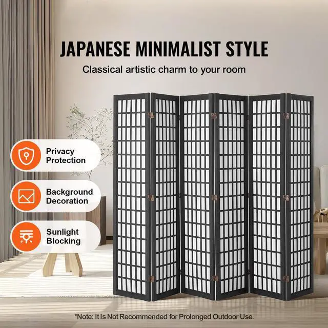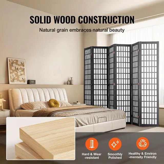 VEVOR Room Divider, 6 Panel Japanese Room Divider, Folding Privacy Screen Indoor, Portable Partition Dividers and Decoration Screens, for Room Separation, Home, Office, Restaurant & Bedroom (Black)