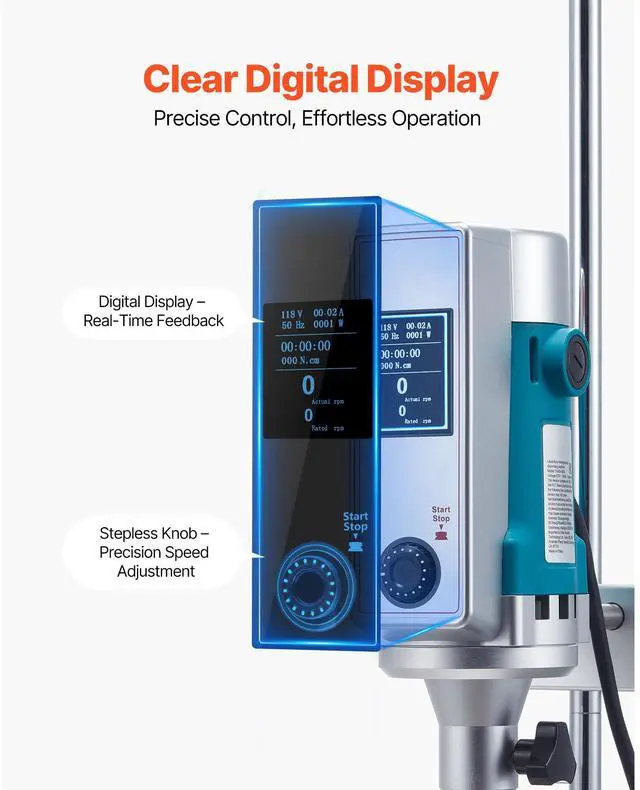 VEVOR Homogenizer, 900 W Laboratory High Speed Dispersing Homogenizer, 2000-28000RPM High Shear Lab Mixer Emulsification Machine, Digital Display Blender, Stainless Steel, for Cosmetics/Food Industry