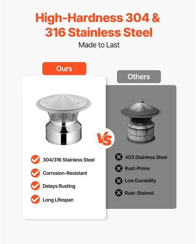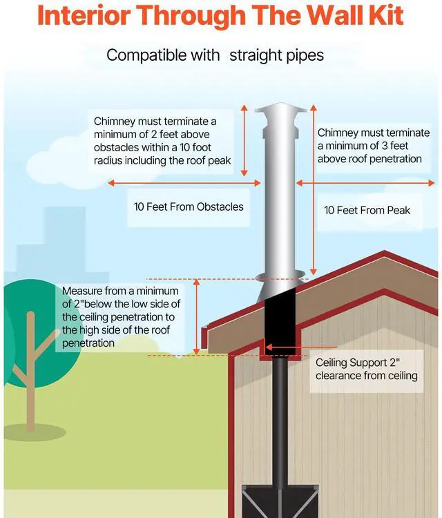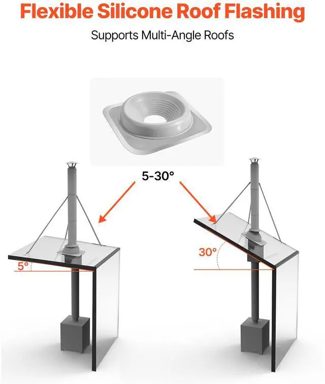 VEVOR Through the Wall Kit for 6-Inch Chimney Pipe, Stainless Steel Internal Through Wall Chimney Kit with Rain Cap,Roof Waterproof Flashing Plate for 5-30 Degree Roof Pitch(No Straight Pipe)