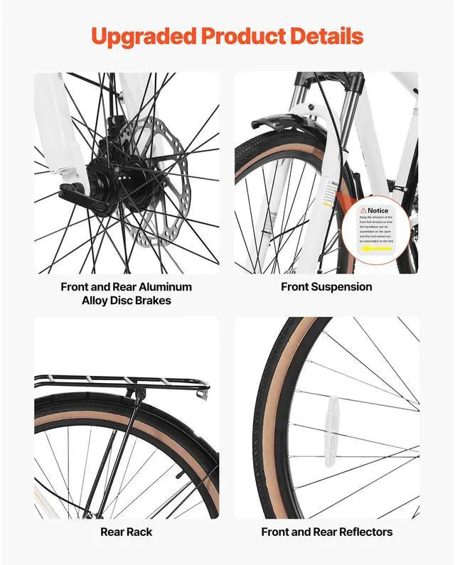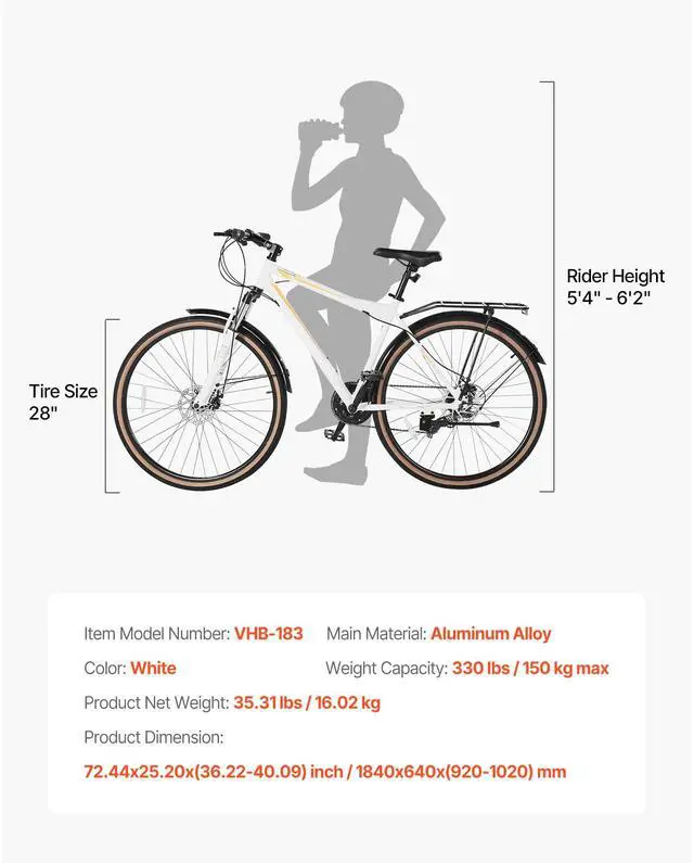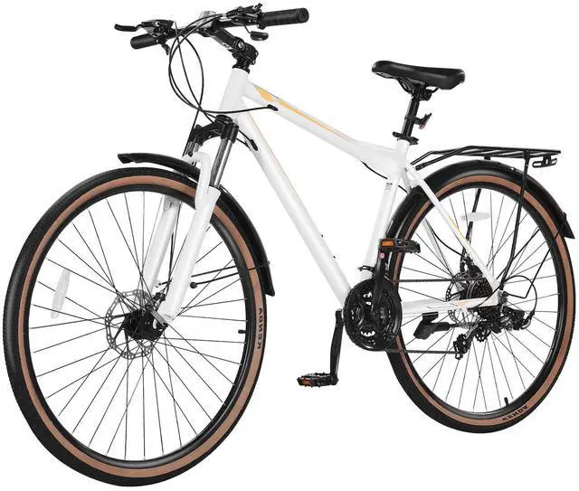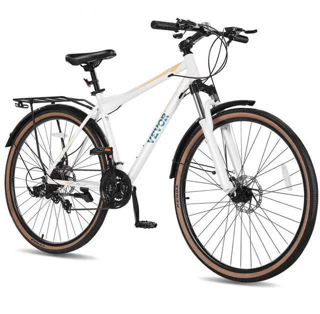 VEVOR Hybrid Bike, Lightweight Aluminum Frame Bike, 700c Wheel Men Women Hybrid Bicycle, Step-Over Adult Urban City Commuter Bikes, with 24-Speed Shimano Drivetrain, Alloy Adjustable Stem, Dual Brakes