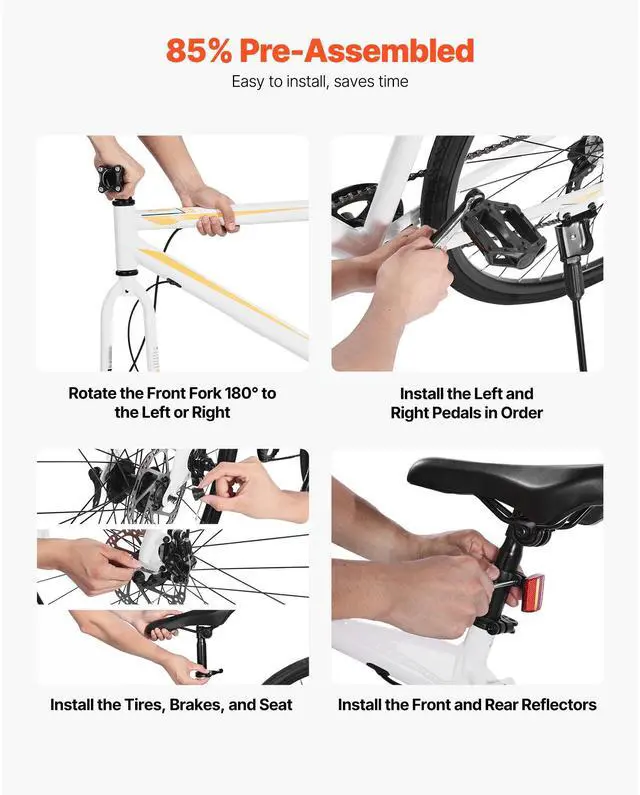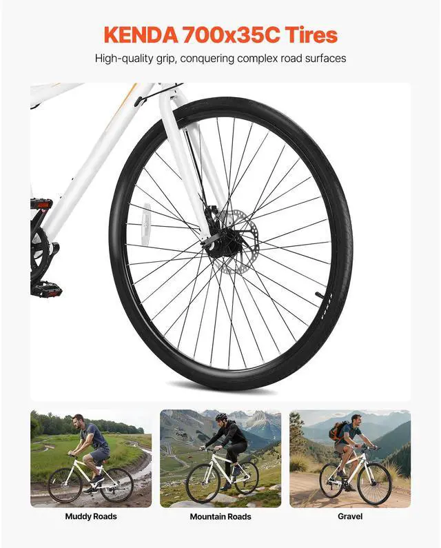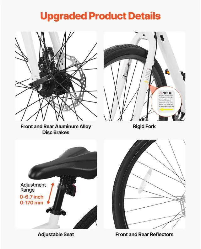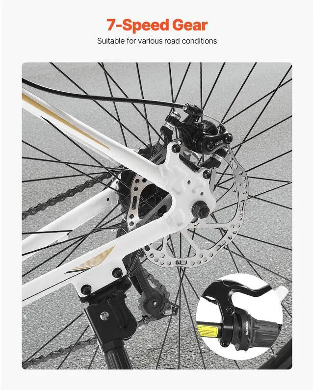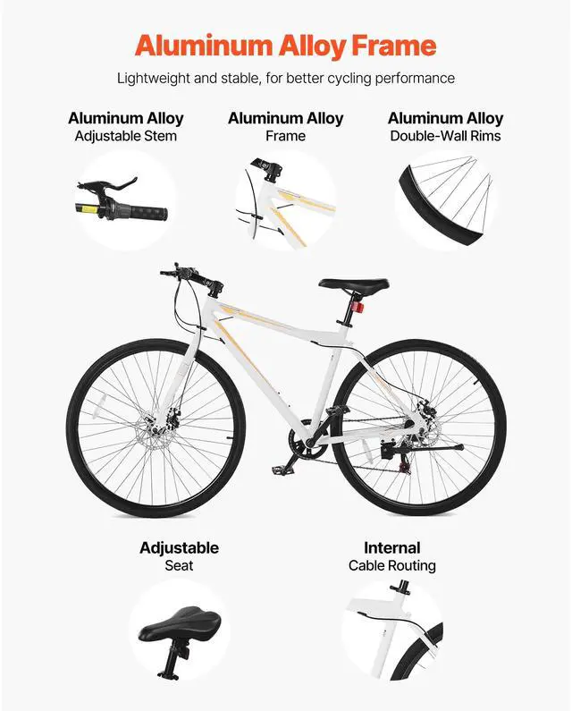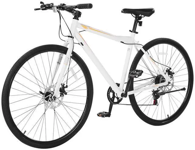 VEVOR Hybrid Bike, Lightweight Aluminum Frame Bike, 700c Wheel Men Women Hybrid Bicycle, Step-Over Adult Urban City Commuter Bikes, with 7 Speed, Alloy Adjustable Stem, Disc Brakes, Adjustable Seat