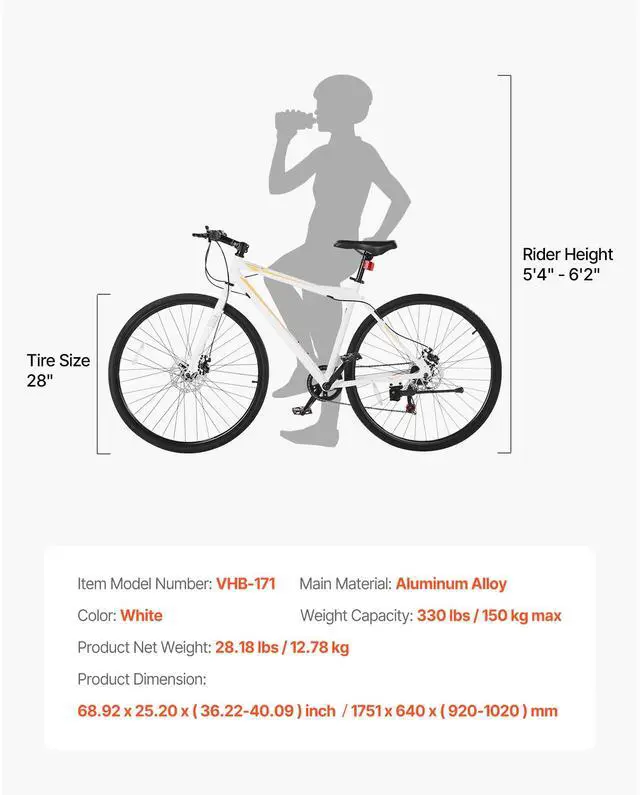 Weight Capacity: 330 lbs / 150 kg Max,Product Dimension: 68.92x25.20x(36.22-40.09) inch / 1751x640x(920-1020) mm,Color: White,Item Model Number: VHB-171,Product Net Weight: 28.18 lbs / 12.78 kg,Main Material: Aluminum Alloy