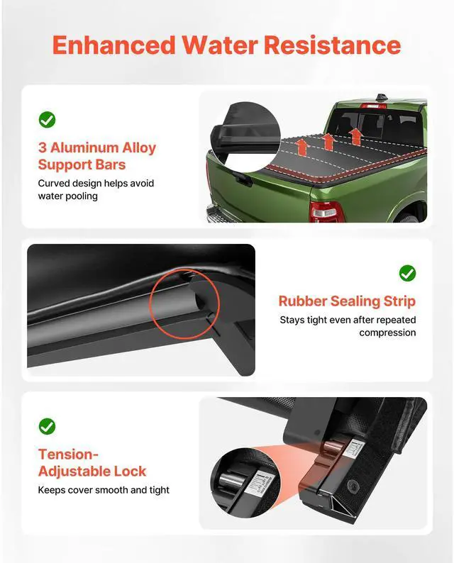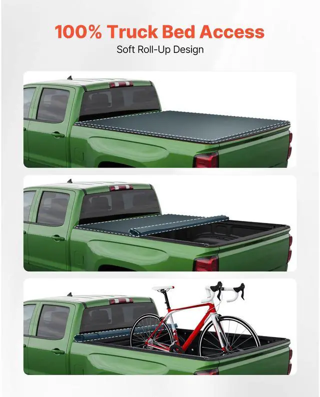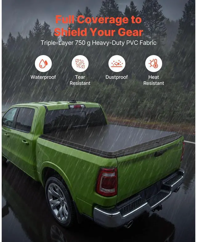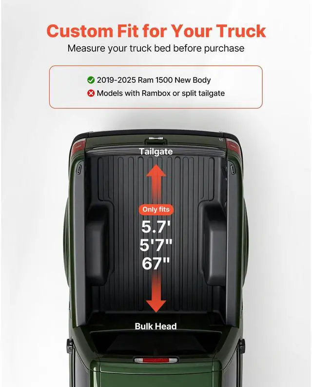 VEVOR Soft Roll-Up Truck Bed Tonneau Cover, Compatible with 2019-2025 Ram 1500 New Body, Fits 5.7 ft (5 ft 7 in/67 in) Bed Without Rambox or Split Tailgate, PVC Tonneau Cover with Aluminum Alloy Bars