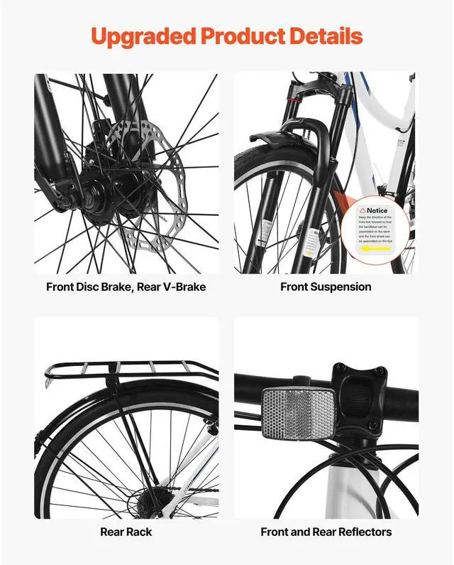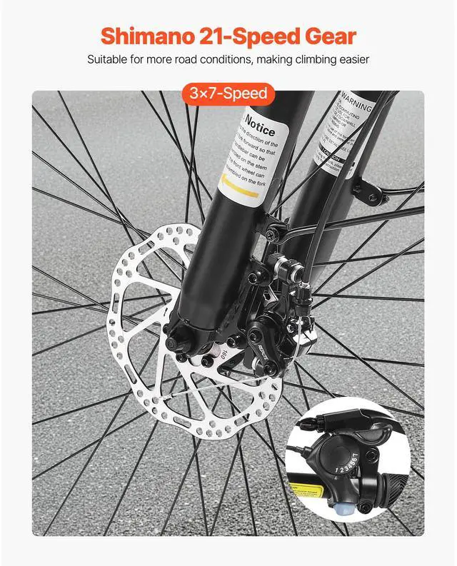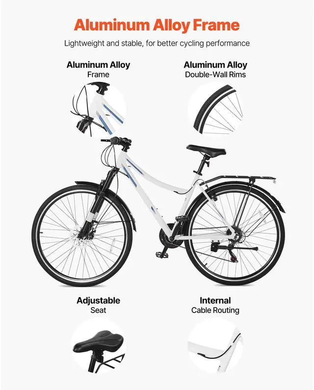 VEVOR Hybrid Bike, Lightweight Aluminum Frame Bike, 700c Wheel Men and Women Hybrid Bicycle, Step-Through Adult Urban City Commuter Bikes, 21-Speed Shimano Drivetrain, Dual Brakes, Front Suspension