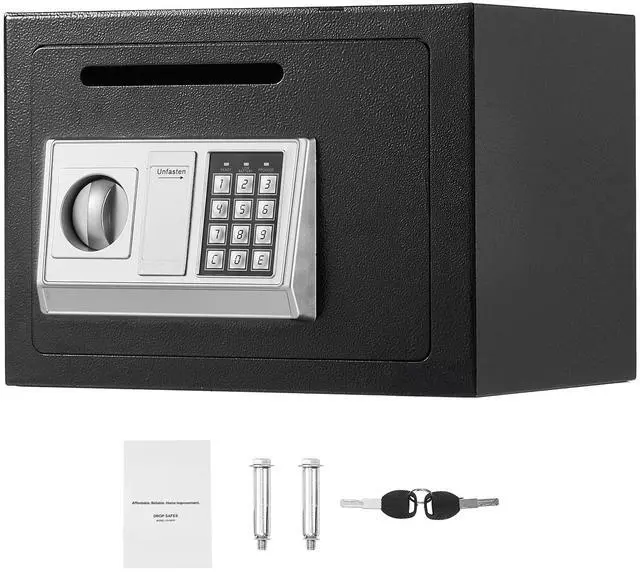 VEVOR 0.6 Cubic Feet Drop Safe, Drop Slot Safe Box with Password and Turn Knob, Heavy Duty Compact Cash Depository Box with a Front Lock Slot for Cash, Bank Slips, Jewelry, Documents, Bills, Black