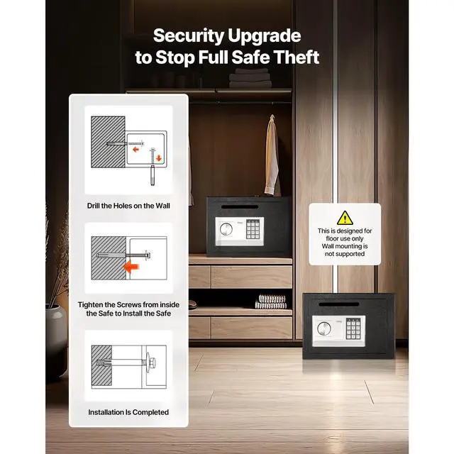 Distance from Lock to Door: 1.1 in / 2.8 cm,Mounting Holes: 2 on the back, none on the bottom,Capacity: 0.6 cu.ft,Door Opening Angle: 150°,Item Model Number: TD-SS25,Door Panel Size (W x H): 11.6 x 8.0 in / 29.5 x 20.5 cm,Material: Q235 Steel + Velvet Lining,Interior Dimensions (W x H x D): 13.6 x 9.6 x 7.8 in / 34.5 x 24.5 x 20 cm,Slot Opening Size (W x H): 6 x 0.5 in / 15.2 x 1.27 cm,Net Weight (with all accessories): 13.4 lbs / 6.08 kg,Product Dimensions (D x W x H): 9.75 x 13.75 x 9.75 in / 25 x 35 x 25 cm