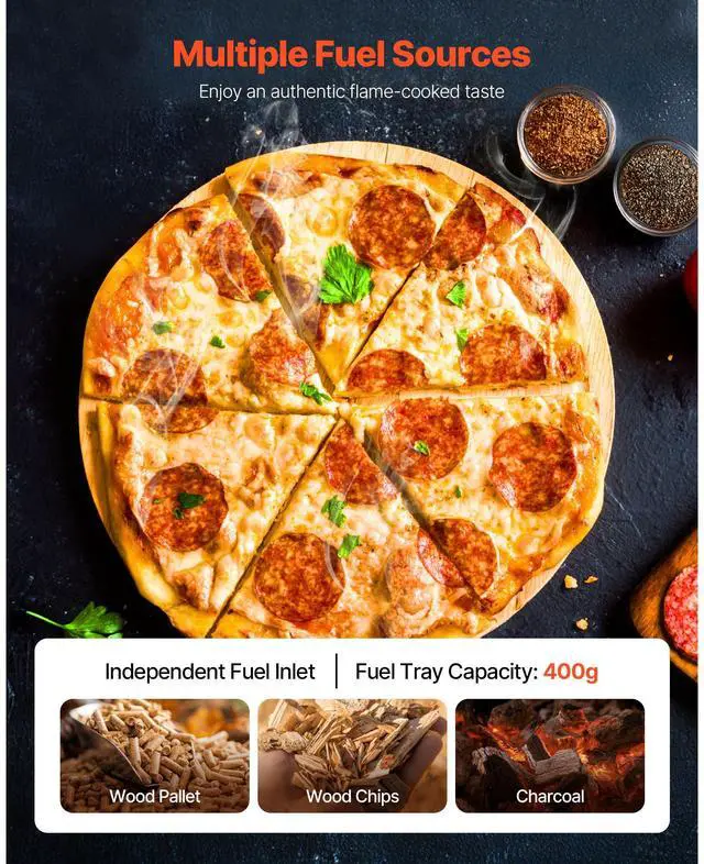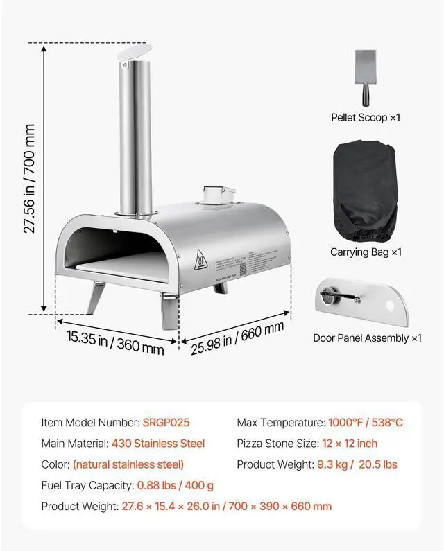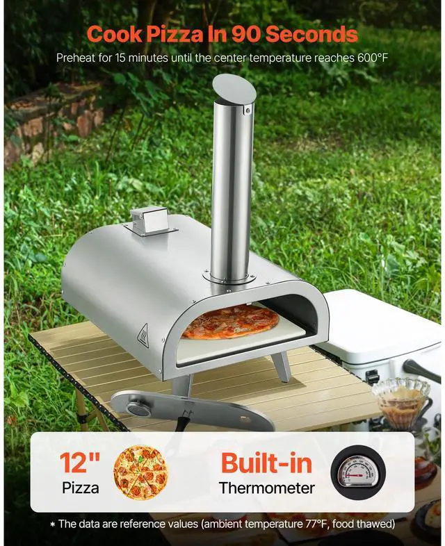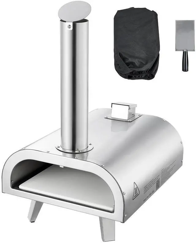 VEVOR Pizza Oven Outdoor, 12" Pellet Pizza Oven, Portable Pizza-Stove with Built-in Thermometer, Wood Fired Stainless Steel Pizza-Maker, for Backyard, Camping, Pizza-Stone, Shovel, Carry Bag, Silver