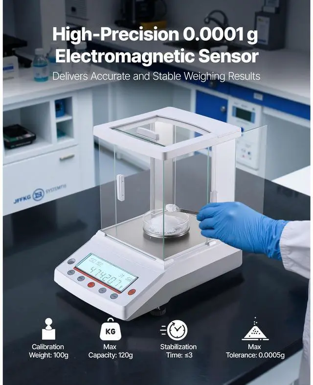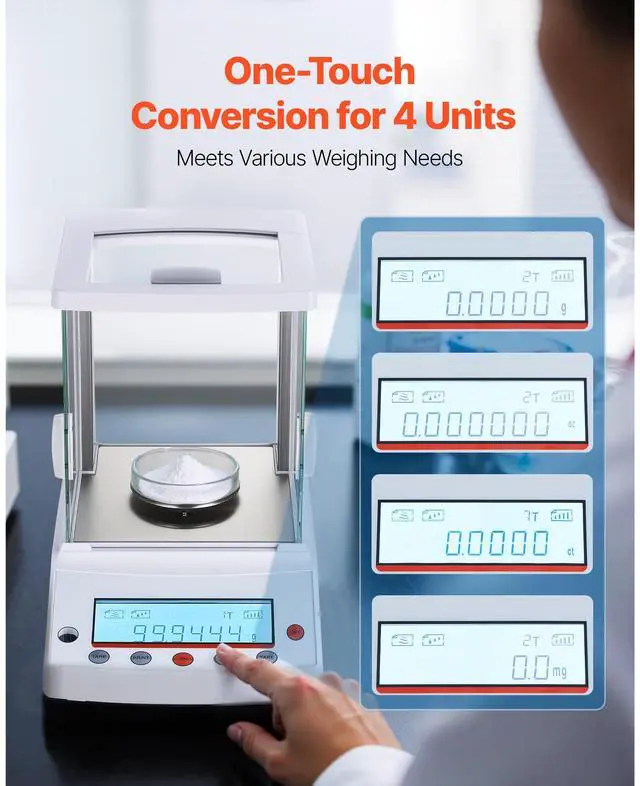VEVOR Analytical Balance, 220 g x 0.1 mg, 0.0001 g High Precision Accuracy Lab Scale, g/oz/ct/mg 4 Units Electronic Digital Analytical Balance with Glass Draft Shield, for Laboratory Jewelry Pharmacy