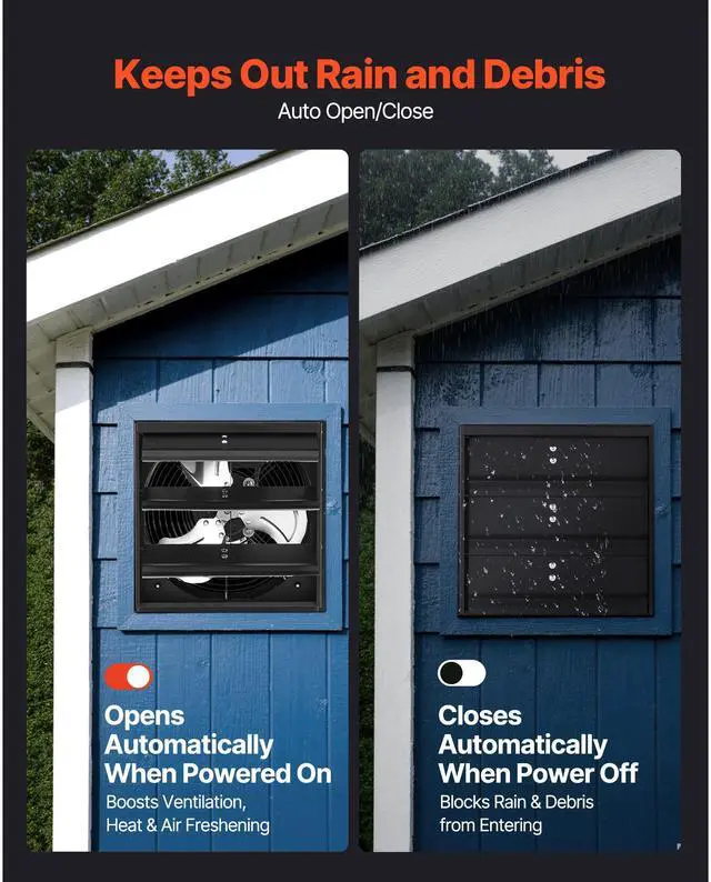 VEVOR 10 inch Shutter Exhaust Fan, Wall Mounted Attic Vent Fan with Variable Speed Controller, 900 CFM, AC Motor, Heavy-duty Steel, Low Noise for Shed, Garage, Greenhouse Ventilation Cooling, Black