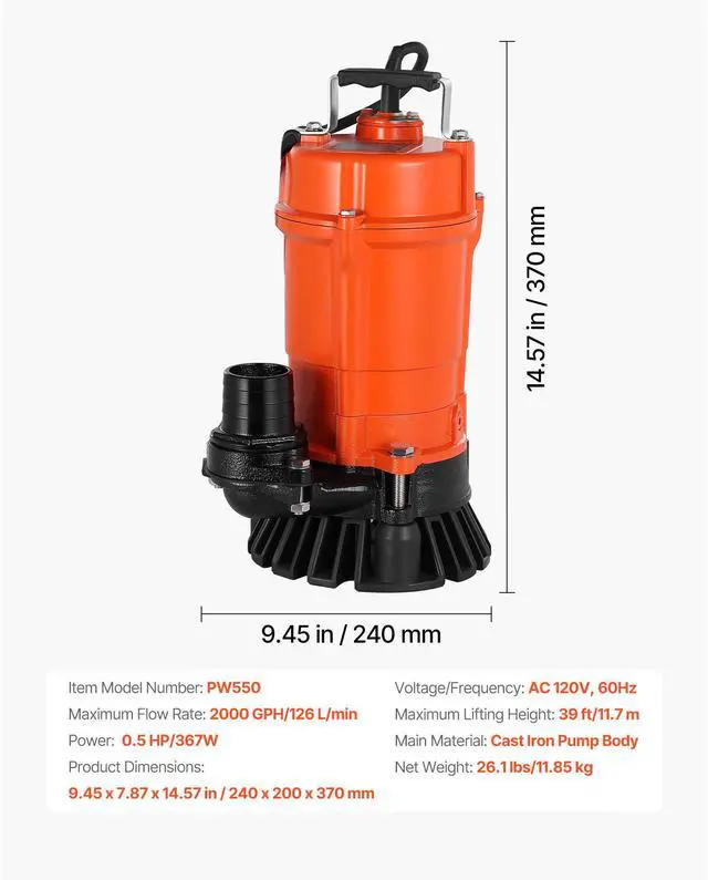 Maximum Flow Rate: 2000 GPH/126 L/min