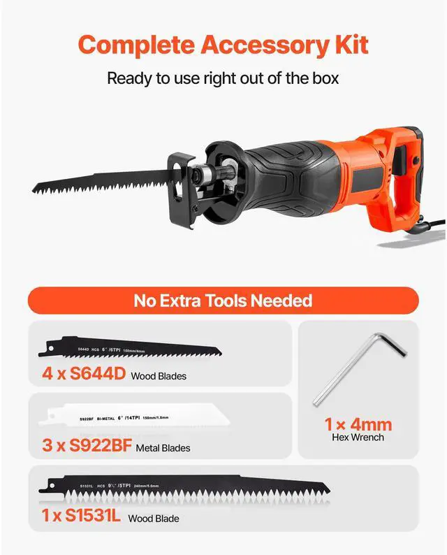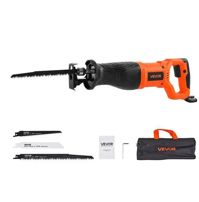 VEVOR Corded Reciprocating Saw, 120 Volt 7.5 Amp, 2800 SPM Variable Speed, 1-1/8 inch Stroke Length, Electric Reciprocating Saw with 8 Blades and Carrying Bag, for Wood, Metal, and Plastic Cutting