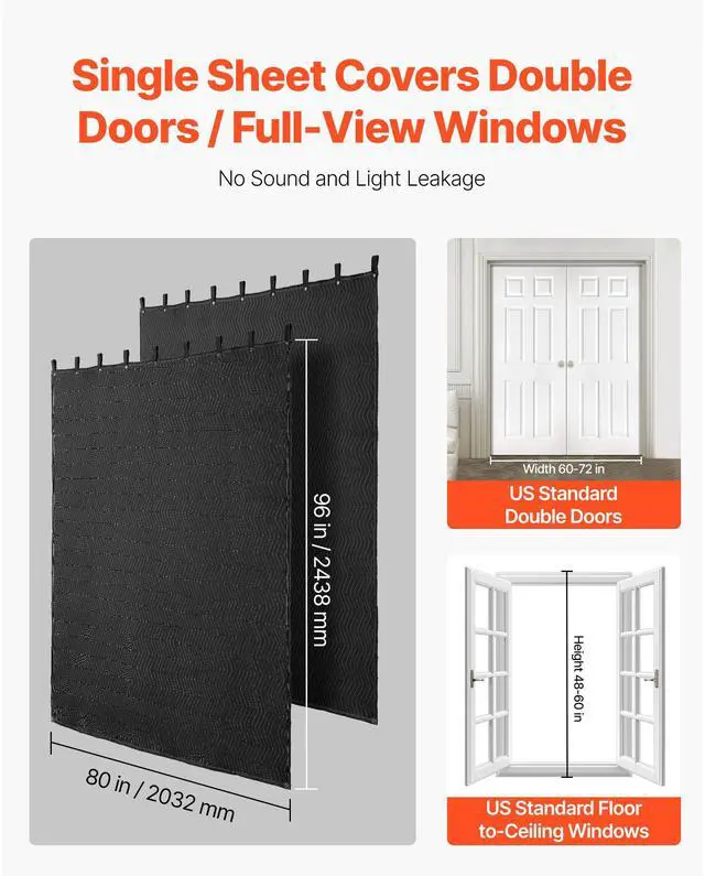 VEVOR 2 Pcs Sound Dampening Blankets, Soundproof Curtains with 96 x 80 in, Soundproof Blanket with Grommets, Studio Grommeted Blanket, for Window, Door, Light Blocker, Music Recording, Black