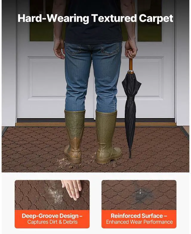 VEVOR Front Door Mat, 47 x 35 in Commercial Floor Mat for Indoor and Outdoor, Modern Stylish Carpet with TPE Backing, Heavy Duty Washable Entry Industrial Rug for Hallway, Balcony, Garage, Brown