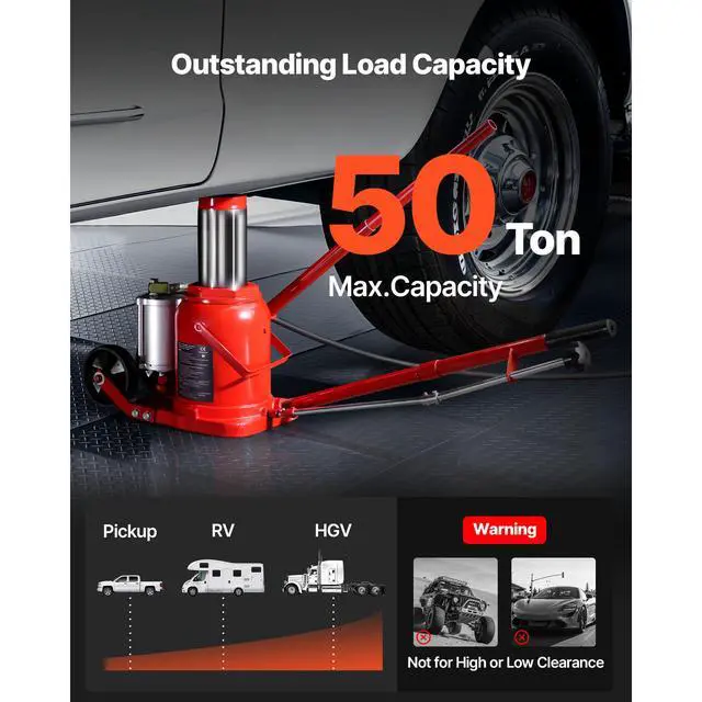 VEVOR Air Hydraulic Bottle Jack, 50 Ton (110231.5 lbs) Capacity, 10.4-16.1 Inch Lifting Range, Pneumatic/Manual Heavy Duty Welded Bottle Jack with Pump for Car, SUV, Pickup, Truck, RV Auto Repair, Red