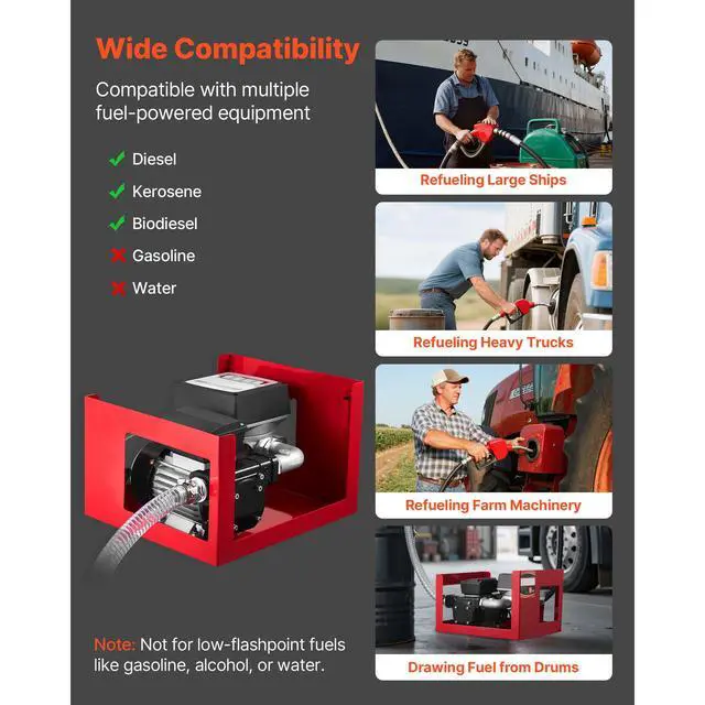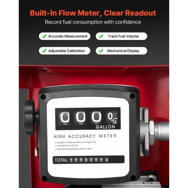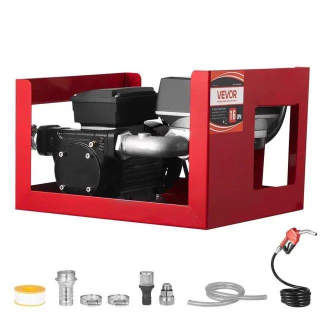 VEVOR Fuel Transfer Pump 110V, 16 GPM 60 L/min, AC Electric Oil Transfer Pump for Diesel Kerosene Biodiesel, with Meter, Auto Fuel Nozzle & 2 Hoses, 45 ft/13.7 m Lift, for Vehicles, Construction Sites