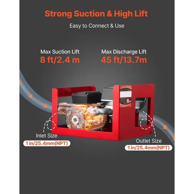 Flow Rate: 16 GPM/60 L/min,Voltage/Frequency: AC 110120V, 60Hz,Item Model Number: ETM-60N-01,Max Lift (Discharge): 45 ft/13.7 m,Power: 0.5 HP/370 W,Max Suction Lift: 8 ft/2.4 m
