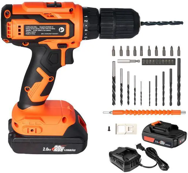 Speed: Dual-Speed, 0-400rpm / 0-1500rpm,Torque: 32N·m,Speed 2 Power: 30W / 1.45A,Steel Drilling Capacity: 0.38 inch / 9.53 mm,Speed 1 Power: 32W / 1.56A,Charging Time: 1.3 Hours,Power Supply: AC 120V 60Hz,Torque Settings: 18+1nm,Wood Drilling Capacity: 1.02 inch / 26 mm,Chuck Size: 1/2-inch,Battery Pack Quantity: 1,Product Dimensions : 7.68 x 2.87 x 8.66 inch / 195 x 73 x 220 mm,Operating Voltage: 13.5-21.5V,Battery: 2000mAh, 5 Cells,Item Model Number: DJZO5026-13,Load Power: 260W,Net Weight: 4.2 lbs / 1.92 kg,Main Material: PA6+GF30+TPE+Rubber