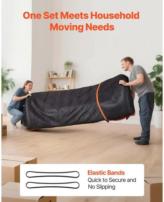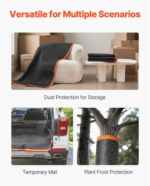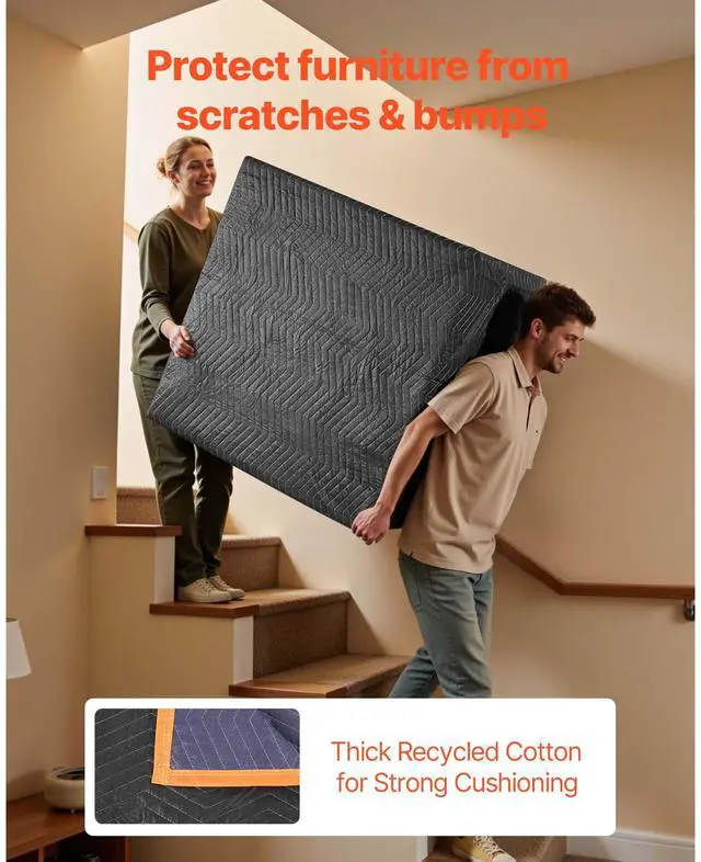 VEVOR Moving Blankets 6 Pcs, 80 x 72 in (35 lbs/dz) Large Packing Blankets with Cotton Filling, Heavy Duty Nonwoven Fabric Padded Moving Blanket for Shipping, Wrapping, Protecting Furniture