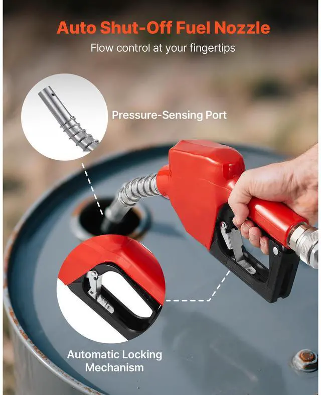 VEVOR Fuel Transfer Pump 110V, 16 GPM 60 L/min, AC Electric Oil Transfer Pump for Diesel Kerosene Biodiesel, with Auto Fuel Nozzle & 2 Hoses, 45 ft/13.7 m Max Lift, for Vehicles, Construction Sites