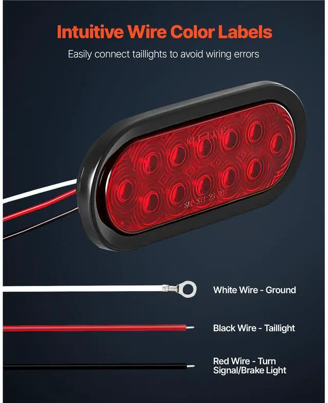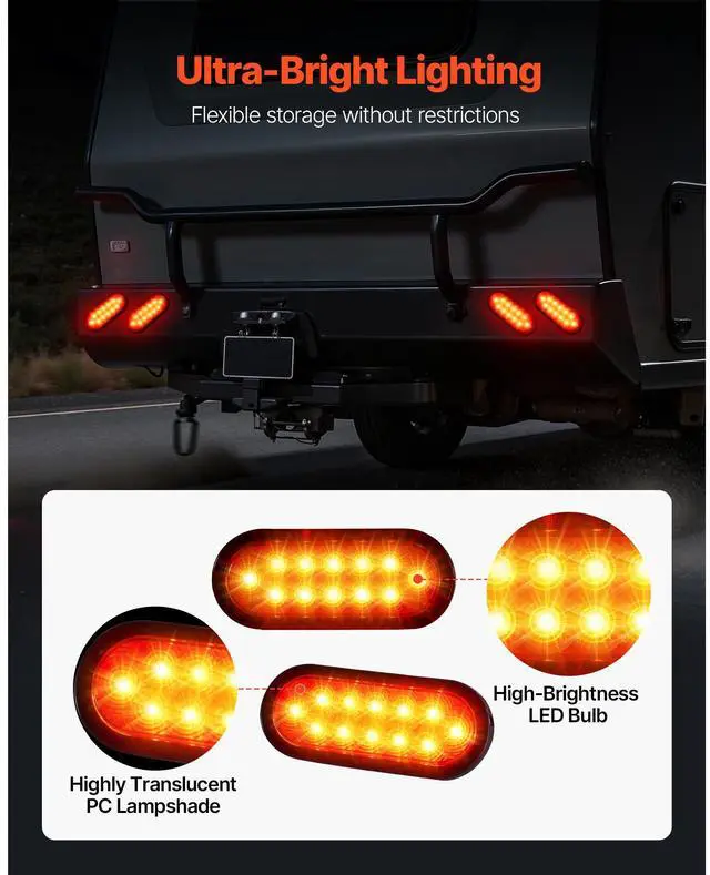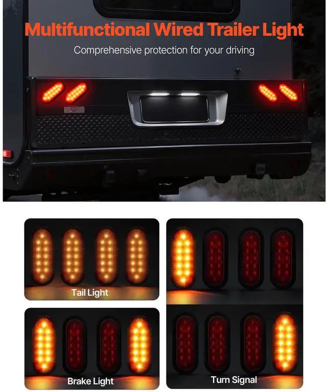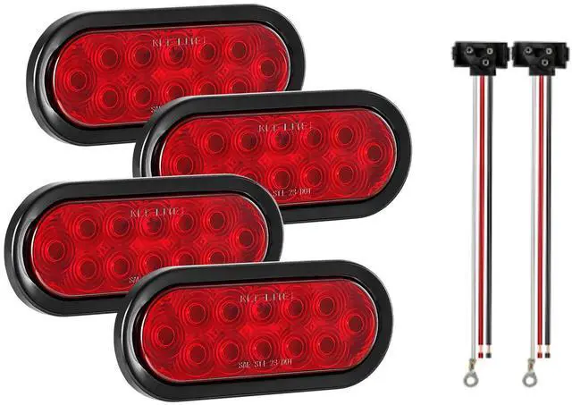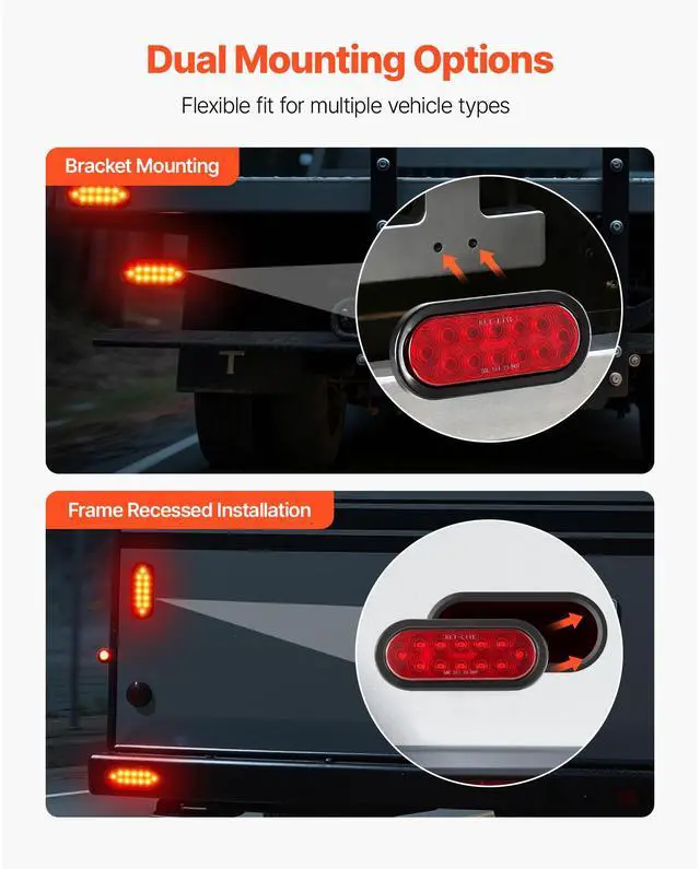 VEVOR Trailer Lights, 4PCS 12V Oval LED Trailer Tail Lights Kit with Stop Brake Turn Tail Lamp, Waterproof Tow Lighting Kit for Boat Truck Camper RV Snowmobile Bus Caravan, 2 Mounting Options, Red
