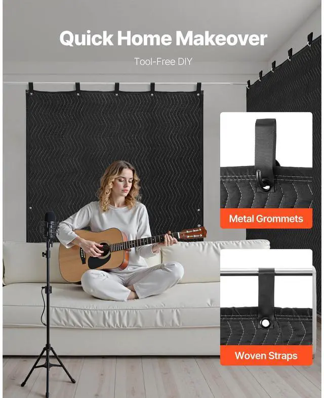 VEVOR Sound Dampening Blankets, Soundproof Curtains with 80 x 48 in, Soundproof Blanket with Grommets, Studio Grommeted Blanket, for Window, Door, Light Blocker, Music Recording, Black