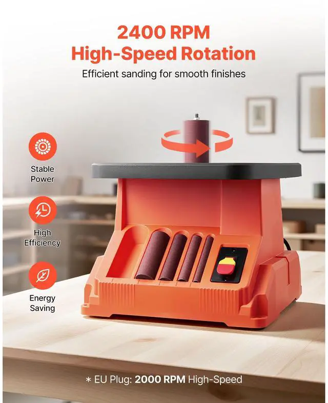 VEVOR Oscillating Spindle Sander, 2400RPM Benchtop Spindle Sander with 6 Sleeves (1/2"-3"), 5/8" Stroke & 15.4 x 16.3-inch Wide Worktable for Furniture Finishing, Crafts Sanding, DIY Woodworking