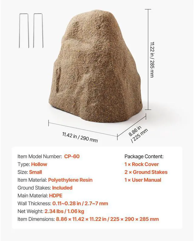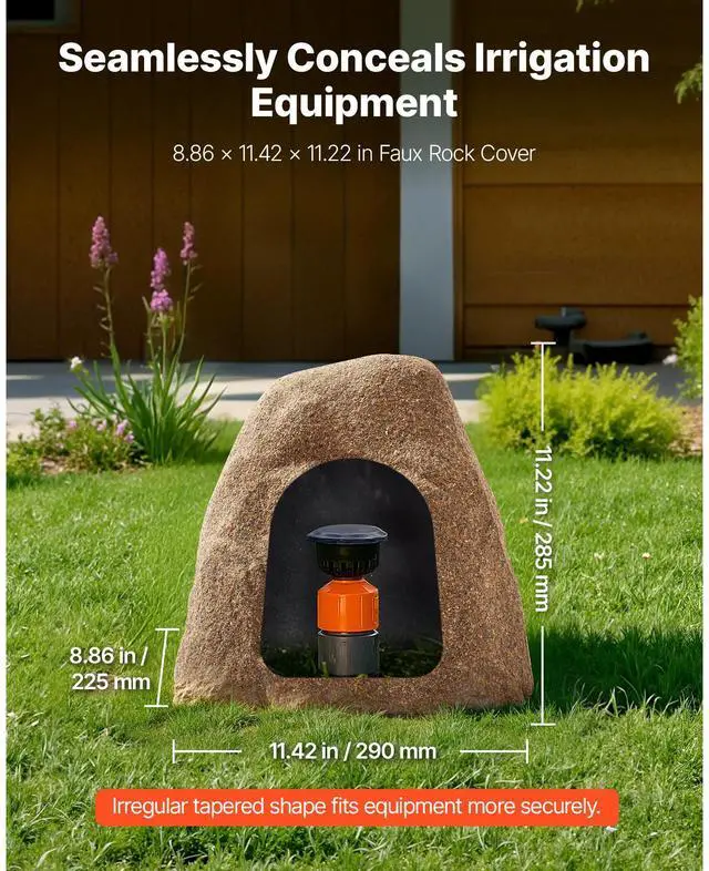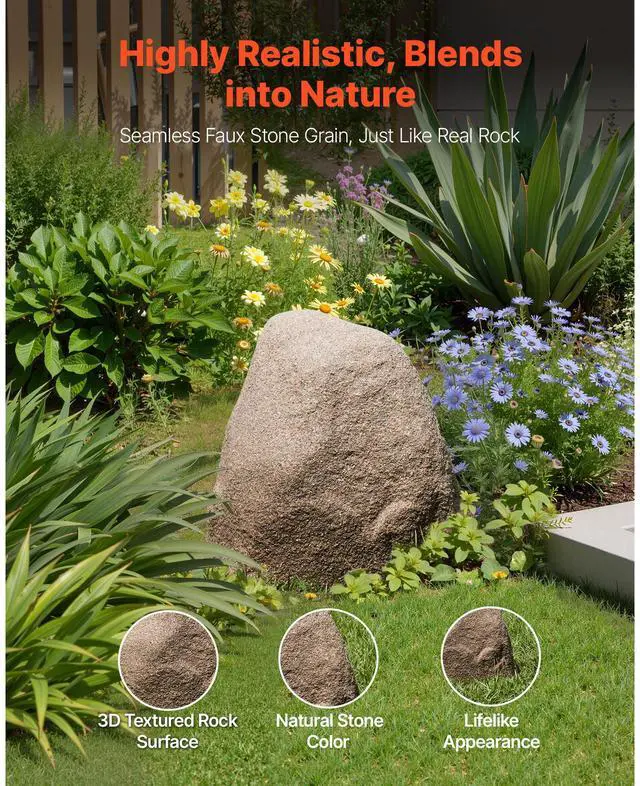 VEVOR Faux Rock Cover, Outdoor Fake Rock Well Pump Cover, Realistic Natural Texture, Lightweight & Weather-Resistant Artificial Boulder for Landscaping Garden Yard Décor, Sandy Brown, Small Size