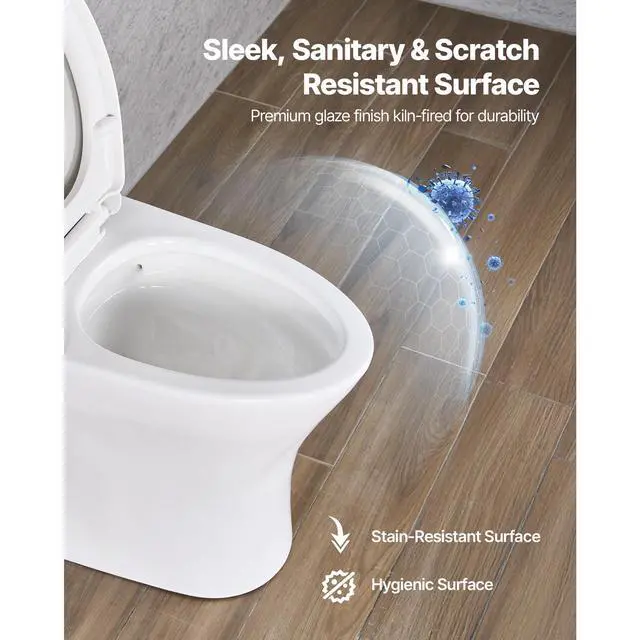 VEVOR One-Piece Toilet, Elongated Toilet Vortex Dual-Flush 1.0/1.28 GPF, Toilets for Bathroom with Comfortable Chair Seat, Standard Height, Easy-Clean Skirted Design, 12 inch Rough-In, White + Black