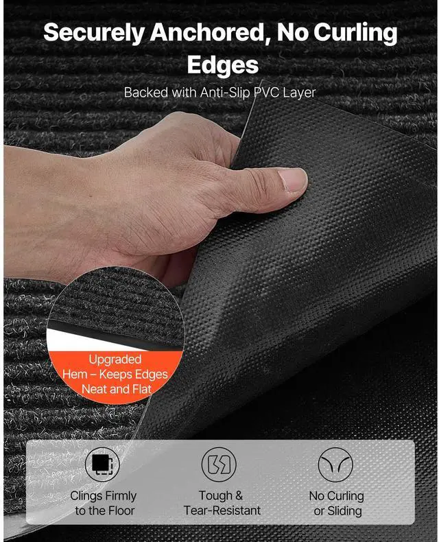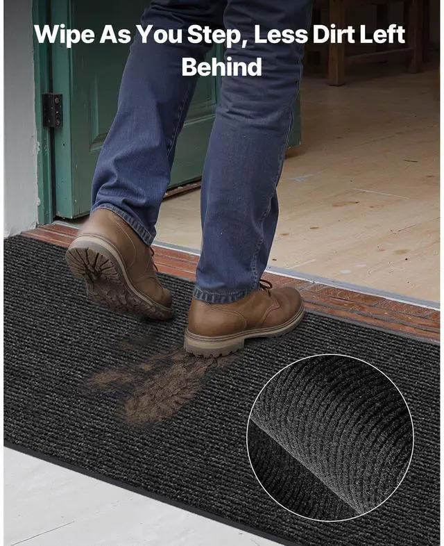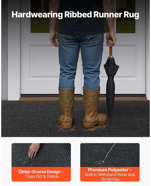 VEVOR Front Door Mat, 10 x 3 ft Commercial Floor Mat for Indoor and Outdoor, Stylish Striped Industrial Carpet with PVC Backing, Heavy Duty Washable Entry Rug for Hallway, Balcony, Garage, Grey