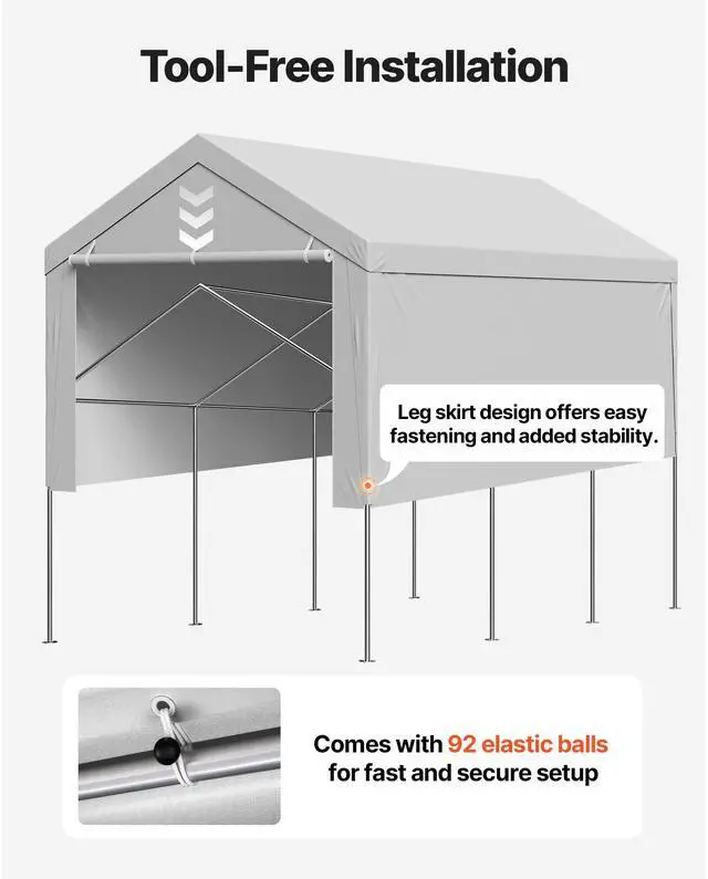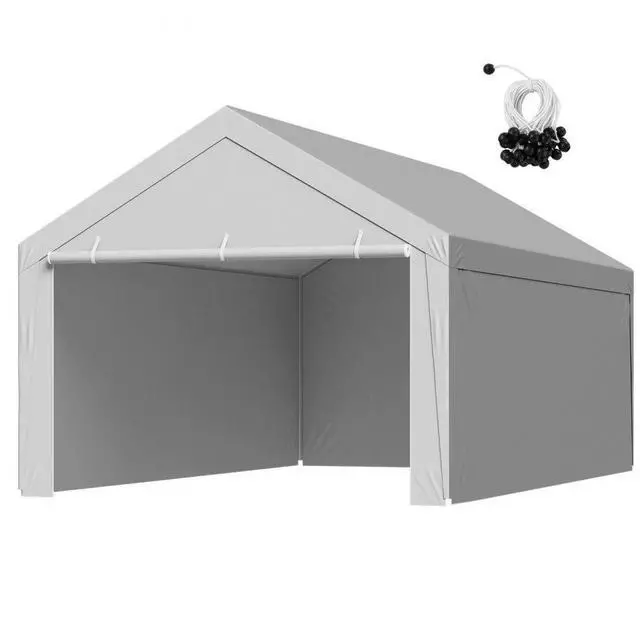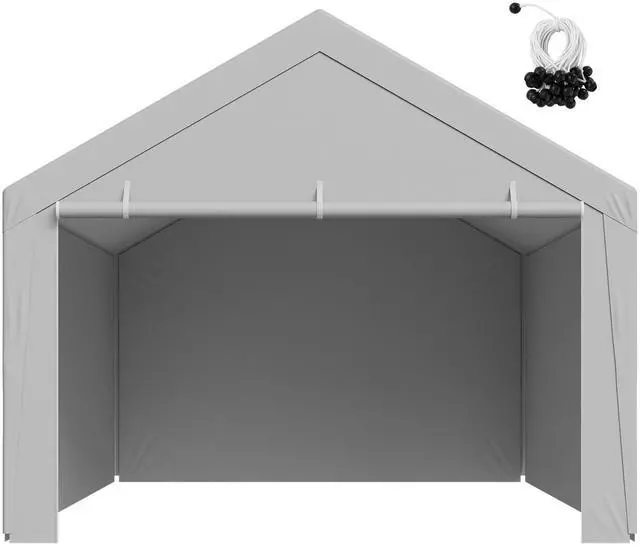 VEVOR Carport Replacement Canopy, 13 x 20 ft Potable Garage Tent Top Tarp with Sidewalls, UV-Resistant & Waterproof, Heavy Duty Car Shelter Tarp with Ball Buggees, Grey, Frame Not Included