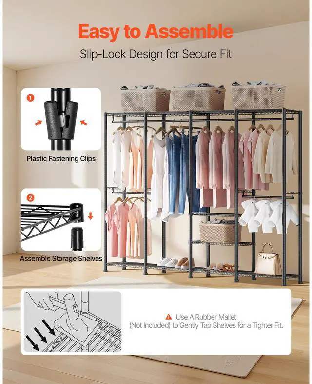 VEVOR Clothing Garment Rack, Heavy Duty Closet Wardrobe, Adjustable Tiers Clothes Racks with Steel Frame, 1100 lbs Load Capacity Clothes Rack with 4 Hanging Rods for Bedroom, Clothing Store, Hallway