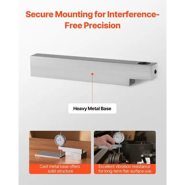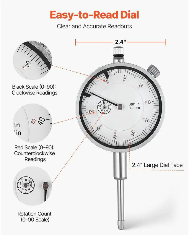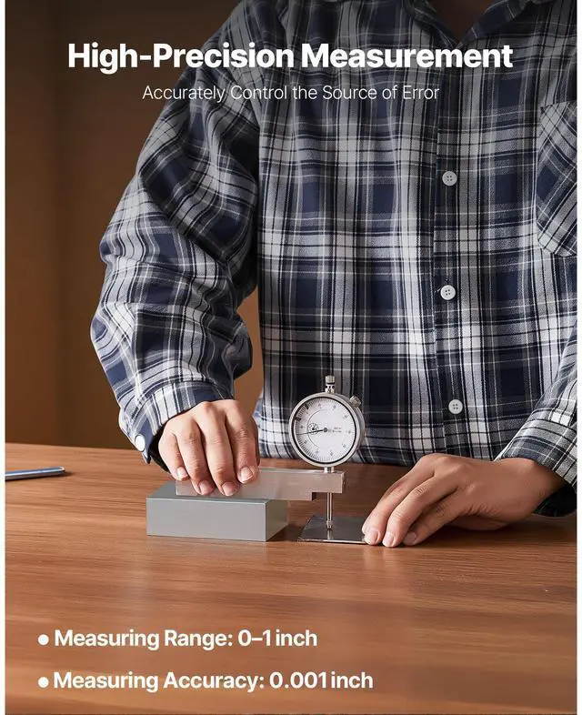 VEVOR Dial Test Indicator with Metal Base, 0.001 inch Accuracy, 0-1 inch Range, Easy to Read Large Dial, Professional for Narrow Area Measurement, Industrial Machining & Inspection, Precision Testing